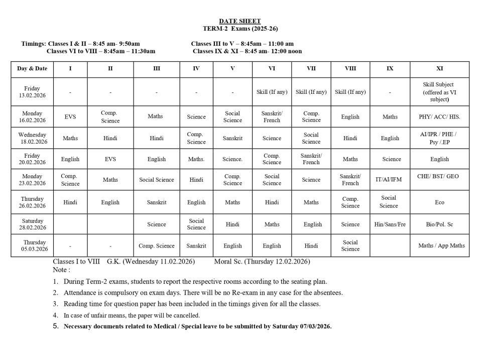 Term 2 Exam of 80 marks for Main Subjects & 50 Marks for Skill Subjects. (Internal/Practical exam of 20/50 marks will be added separately. )